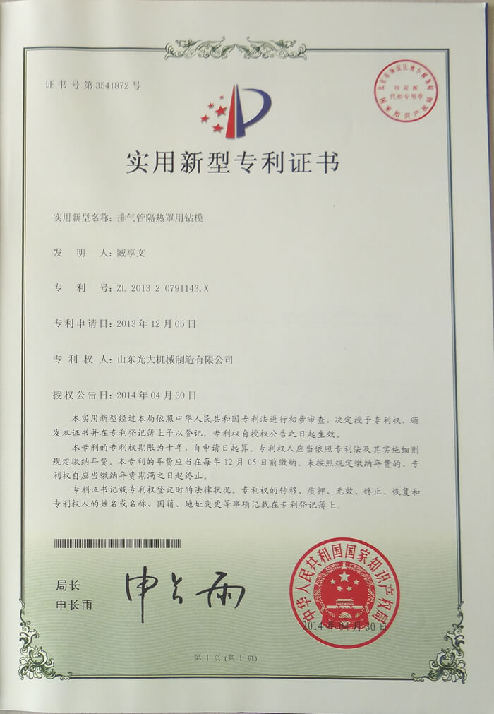 排气管隔热罩用钻模-实用新型专利证书